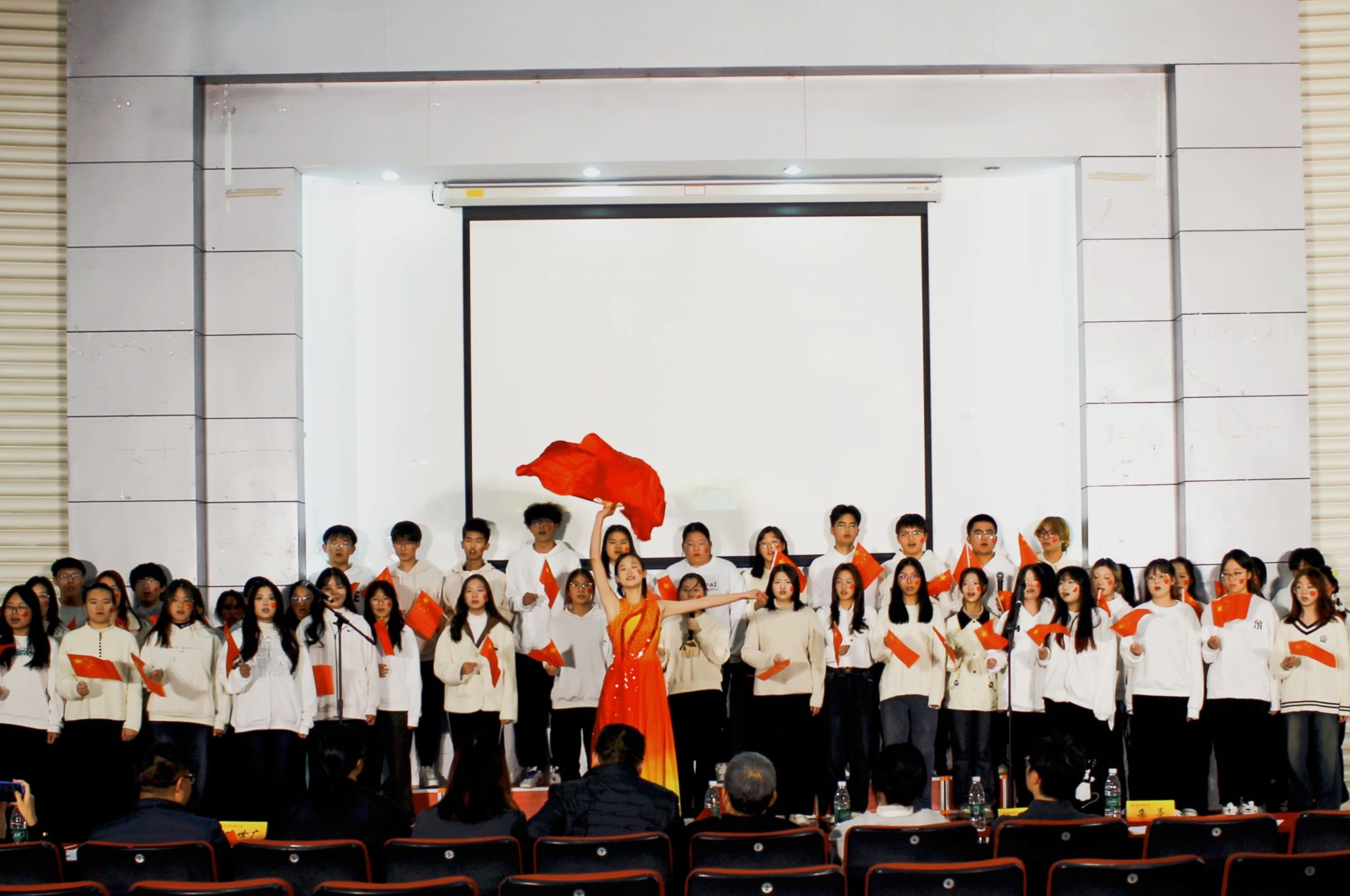 研究生统计班用《我爱你中国》点燃现场氛围。歌声里满是滚烫的心跳,字句间藏着滚烫的信仰。我爱你中国,爱你的朝暾夕月,也爱你的万里稻香。