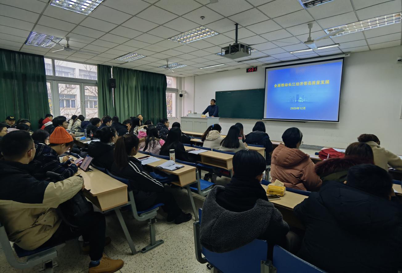 2020年12月2日下午,南京市发展和改革委员会长江经济带发展处处长、南京社科联常委殷京生应邀在德经楼202教室作了题为“全面推动长江经济带高质量发展”的学术讲座。本次讲座由党委宣传部和经济学院主办,党委宣传部副部长秦韶华主持,我院部分教师和研究生聆听了本次讲座。