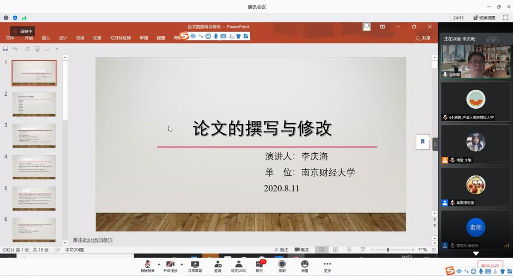 8月11日下午,南京财经大学李庆海副教授为暑期学校的学员们作了题为“论文的撰写与修改”的专题讲座。