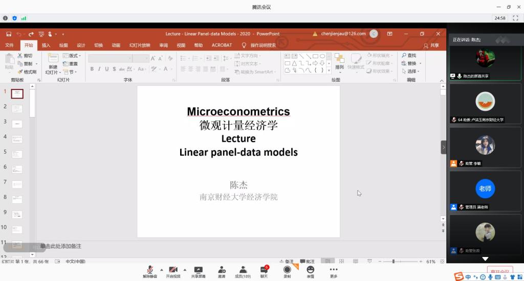 8月10日下午,南京财经大学陈杰副教授为暑期学校的学员们作了题为“面板计量模型及Stata实现”的专题讲座。