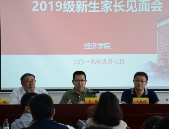 朱红根院长代表经济学院全体教职员工向家长们表示感谢,介绍了学院师资力量、专业与学科建设、科研成果、人才培养成果等内容,鼓励2019级新生在大学期间努力学习、不负选择,拥有更完善的人格品质。