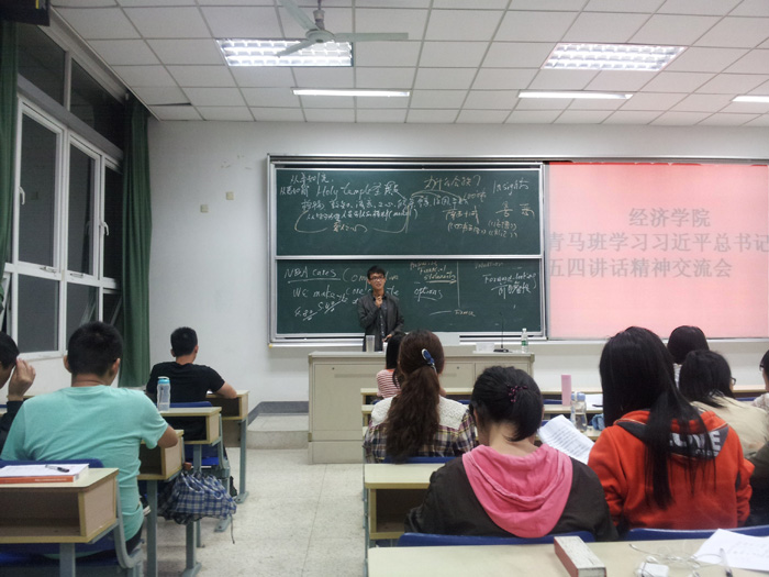 5月17日晚,我院青年菁英人才培训学院学习习近平总书记五四讲话精神交流会在专一103举办。此次活动采取小组讨论的形式,各小组的同学在小组内讨论自己对五四精神的见解和感悟。最后,有六名同学代表各组上台发表关于五四精神的感悟。上台参与交流同学有曾小强同学,张美玲同学,尹娜同学,承维同学,陈栋同学,袁飙同学。