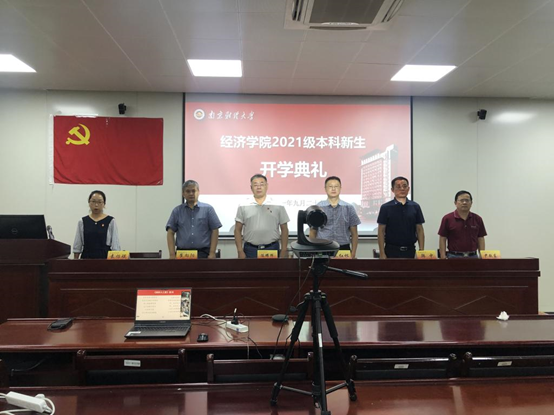 9月29日晚,我院2021级新生开学典礼以腾讯会议形式线上直播。院党委书记陈耀辉、院长朱红根、党委副书记袁怡琨、副院长崔向阳、尹敬东、韩中、学工秘书尹海燕、分团委老师兼辅导员梁少颖等参会。党委副书记袁怡琨主持典礼,2021级全体新生在各自的宿舍观看直播,线上参与。
