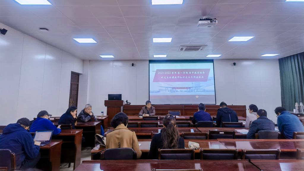 为加强研究生课堂教学管理,落实本学期研究生教学工作安排,总结研究生教学工作经验,剖析研究生教学过程中存在的问题,切实保证和提高研究生教学质量,11月10日下午,我院在德经楼307会议室组织召开了2021-2022学年第一学期研究生任课教师座谈会,听取研究生课程任课教师和研究生导师对学院研究生教学管理的意见和建议。我院研究生课程任课教师、研究生导师代表,以及研究生秘书吕张怡参加了会议。座谈会由我院分管研究生工作的副院长崔向阳教授主持。
