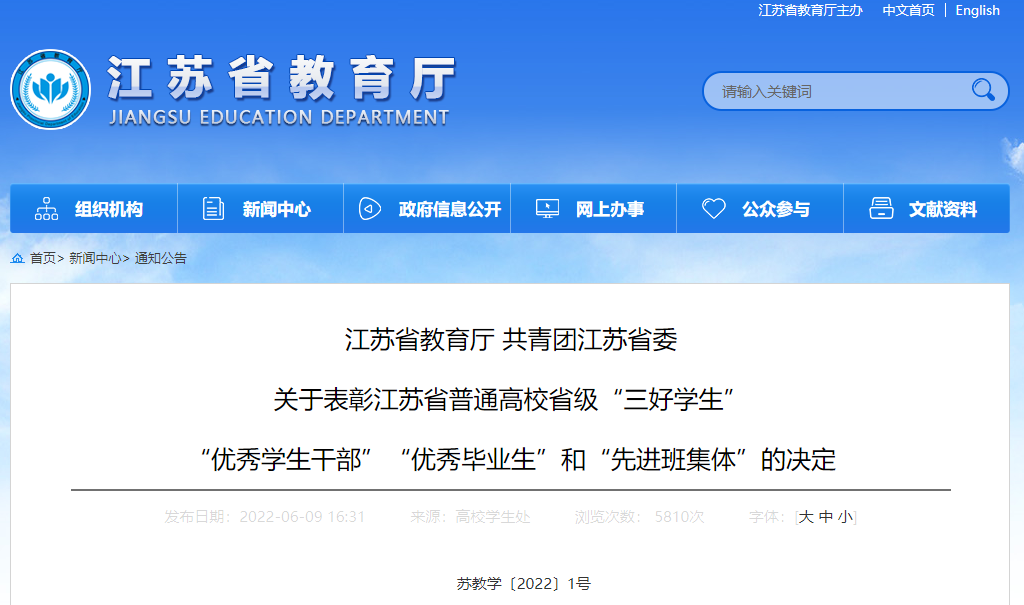 近日,江苏省教育厅、团省委下发通知,在各高校层层推荐、择优遴选的基础上,经审核、公示,我院经济学2019级研被评为江苏省普通高校省级“先进班集体”,2020级应用统计专业黄欣媛被评为江苏省普通高校省级“优秀学生干部”,2019级人口、资源与环境经济学专业王庆玲被评为江苏省普通高校省级“优秀毕业生”。