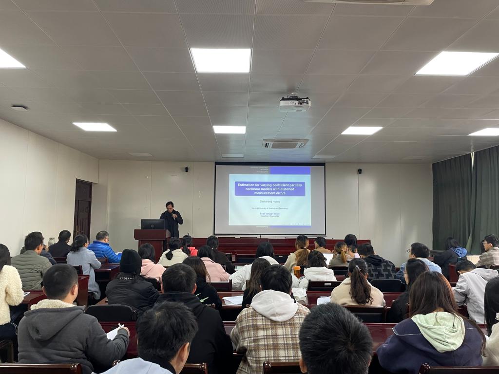11月30日上午,南京理工大学理学院博士生导师黄振生教授,在经济学院307会议室作题为“Estimation for varying coefficient partially nonlinear models with distorted measurement errors”的学术报告。报告由经济学院党委书记陈耀辉教授主持,经济学院师生聆听了此次报告。
