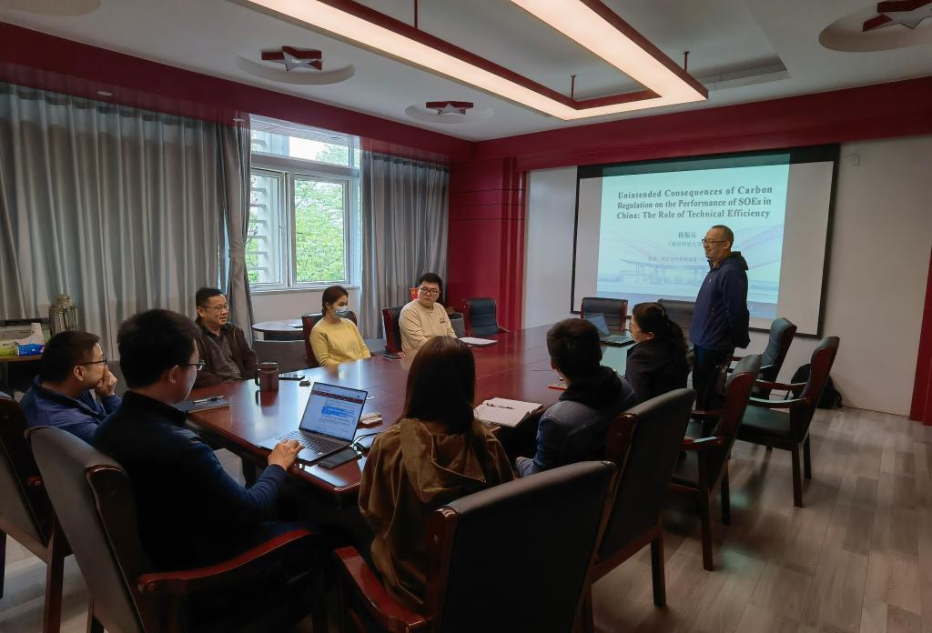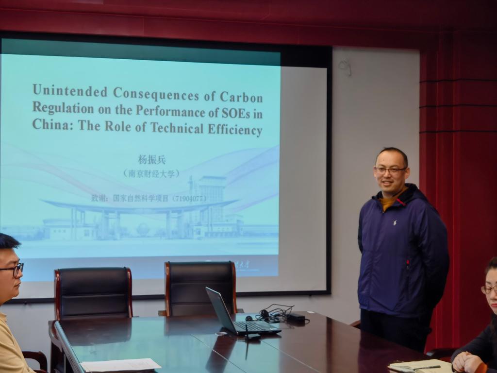 4月21日下午,经济学院在德经楼329会议室成功举办了本学期第二期双周学术论坛。本期论坛由经济系杨振兵副教授带来题为《Unintended consequences of carbon regulation on the performance of SOEs in China: The role of technical efficiency》的学术讲座。